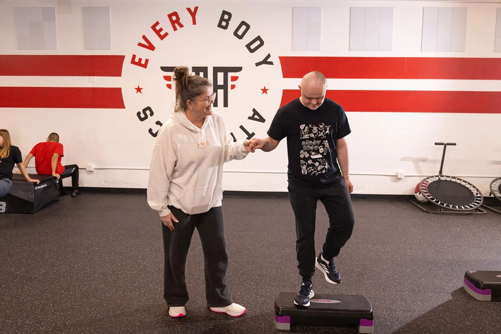 EBA Functional Fitness is designed for both athletes and their caregivers to collaboratively engage in exercises that enhance daily living skills and overall wellbeing. Designed by a licensed occupational therapist with her doctoral degree in OT, each session focuses on functional skills that are meaningful to athletes’ personal goals that they have for the home, at work, and in the community.