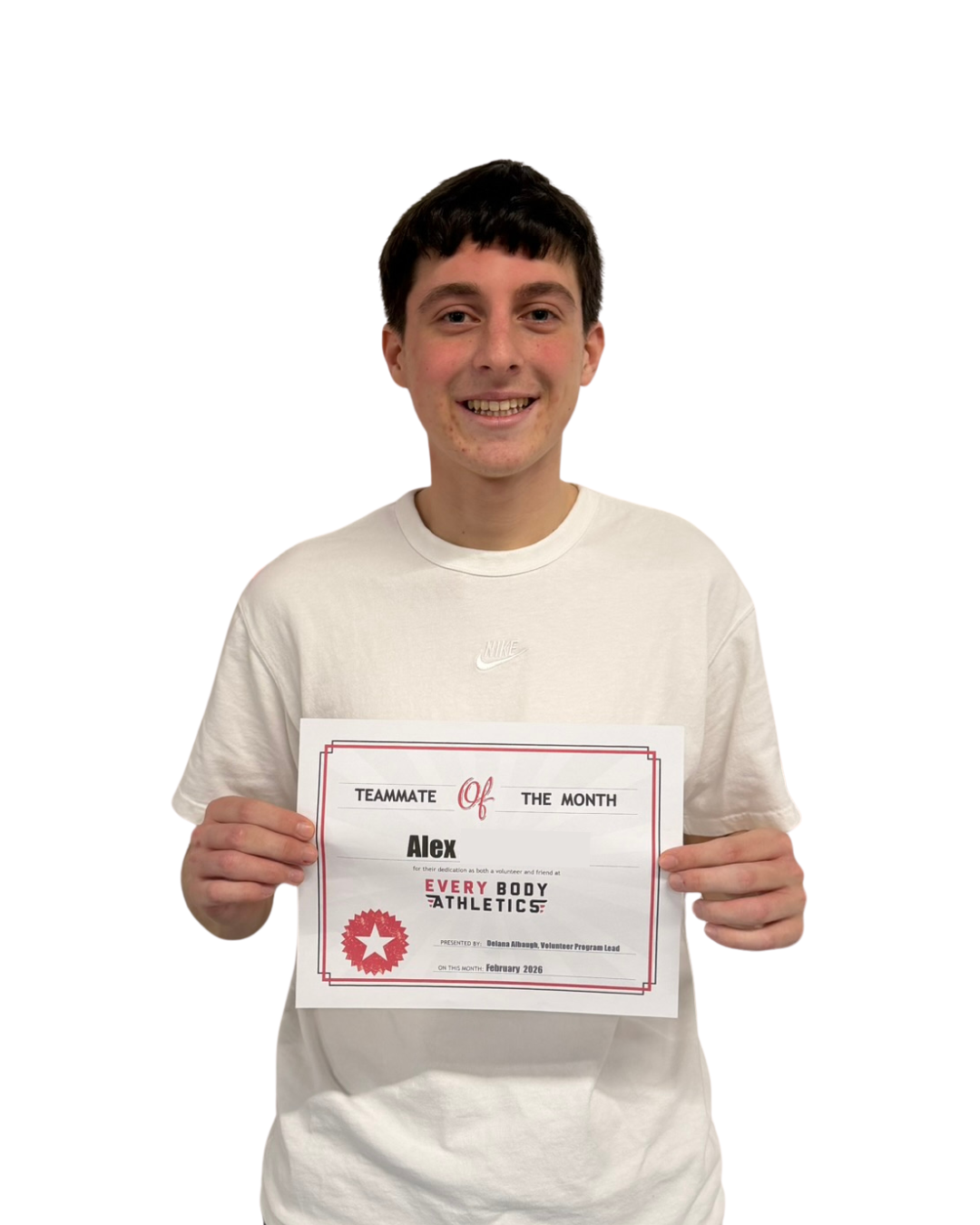 Congratulations to our February Teammate of the Month: Alex! Alex is a dedicated and hardworking EBA teammate. Alex attends two classes a week and makes an intentional effort to get to know all of the people in his classes! Alex has built strong friendships with all of the athletes in class, which shows his easygoing, fun, and friendly demeanor. Alex, never stop being your kind and sincere self!