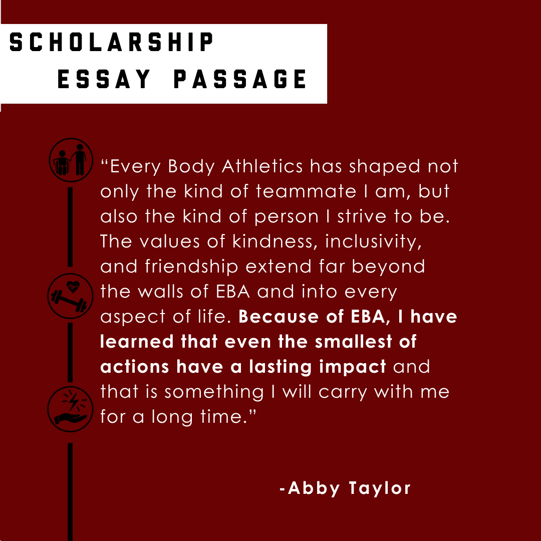 Any EBA teammate who will be a senior in high school during the 2025-26 school year is welcome and encouraged to apply. The application window opens on November 1st, closes on April 1st, and winners will be announced on April 15th. Any questions about this scholarship opportunity can be sent to info@everybodyathletics.org.